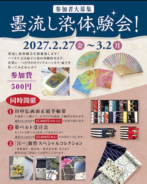 同時開催で、田中伝の半幅帯を特別価格でお作り頂けます。